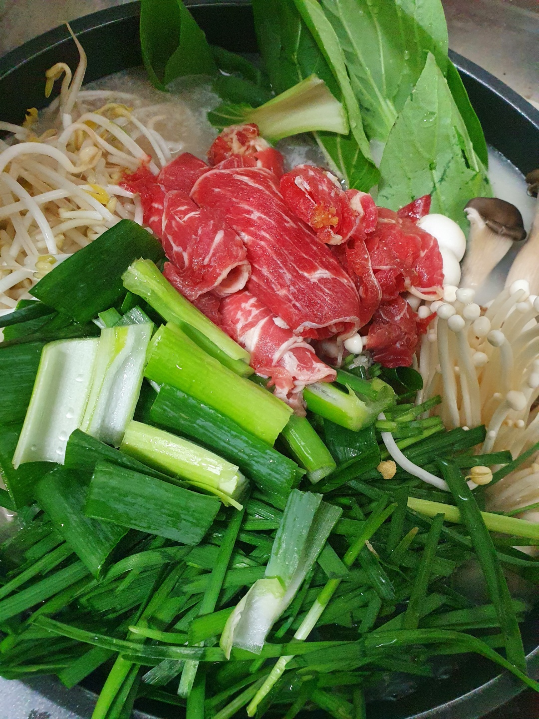 저는 청경채 , 숙주 , 모둠 버섯 , 파 , 부추를 준비해 줬어요